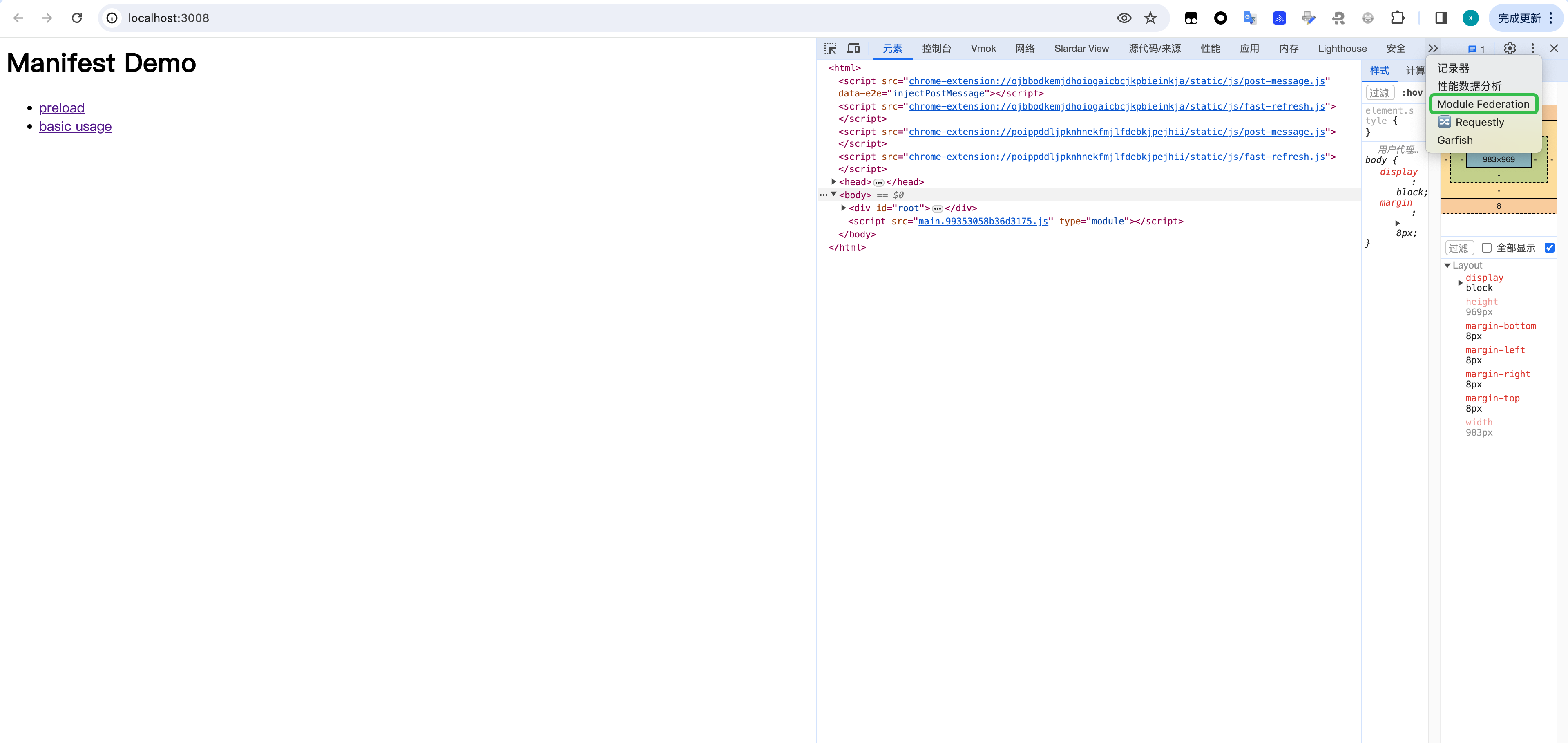 architecture differs from the traditional monolithic application development model. Its characteristics of separate development, deployment, and debugging necessitate a new set of debugging tools to meet new usage scenarios, such as: how to verify the effect of modules in actual projects when developing Module Federation
